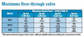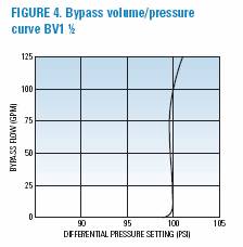 Blackmer valves provide exceptionally close pressure control, even under widely varying bypass flow conditions. The performance curve in Figure 4 shows how a Blackmer valve maintains a virtually constant pressure of 100 psi (6.89 Bar) even as the volume being bypassed rises from 10 gpm to 100 gpm (38-378 lpm). Although the curve is that of a BV11?2" valve, the precision it demonstrates is typical of any Blackmer valve.