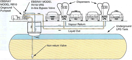 The RB10 Pump relies upon complex and finely balanced thermodynamic principles exhibited when the pump interacts with the LPG liquid during the actual pumping cycle. The slight differential in vapour pressure thus created instantaneously ¡¥drives' the LPG up to the pump ¡V overcoming the static head and friction losses in the ¡¥suction' system. (Optimum system design is essential and Ebsray's qualified technical staff can assist fully.)